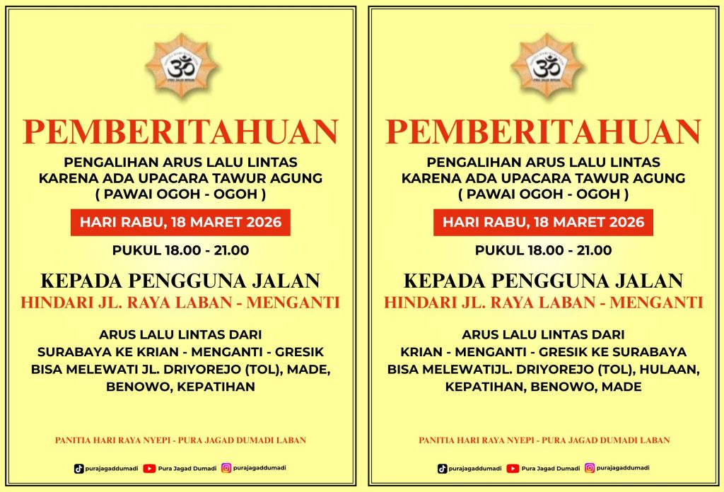 Sehubungan dengan akan dilaksanakannya kegiatan Pawai Ogoh-Ogoh dalam rangka menyambut Hari Raya Nyepi, bersama ini kami membagikan informasi mengenai jadwal serta rute pawai yang akan dilalui.